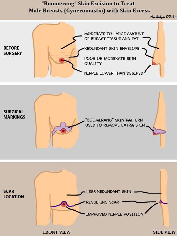 To learn how to treat a large amount of male breast tissue or skin excess – such as after significant weight loss, see this figure:
